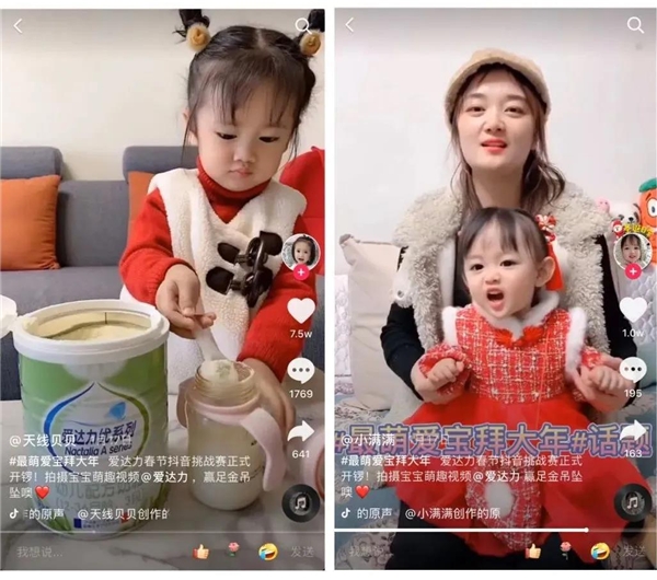 随着移动终端普及和网络的提速,短视频成为了当下流量收割最主要的平台之一。2020年第一季度,爱达力接连在抖音平台推出#最萌爱宝拜大年#、#厨神宝妈 为爱加料#抖音挑战赛。从内容到资源精准链接目标人群,活动总曝光量高达800W+人次,强势收割新流量。